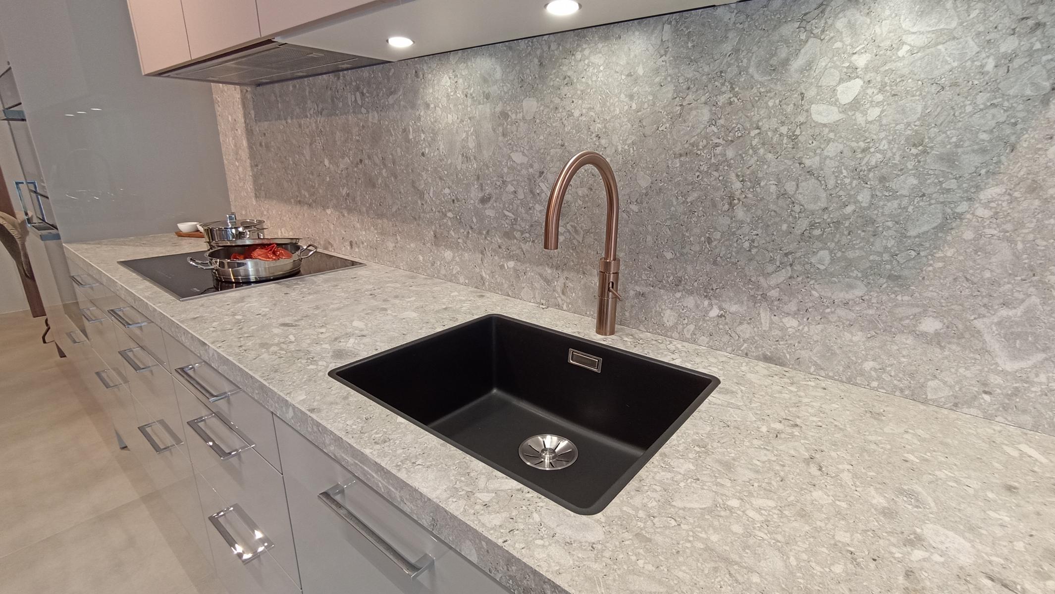 inkl. Arbeitsplatte und Seitenwangen in Silestone Grey Amazon poliert 2 cm